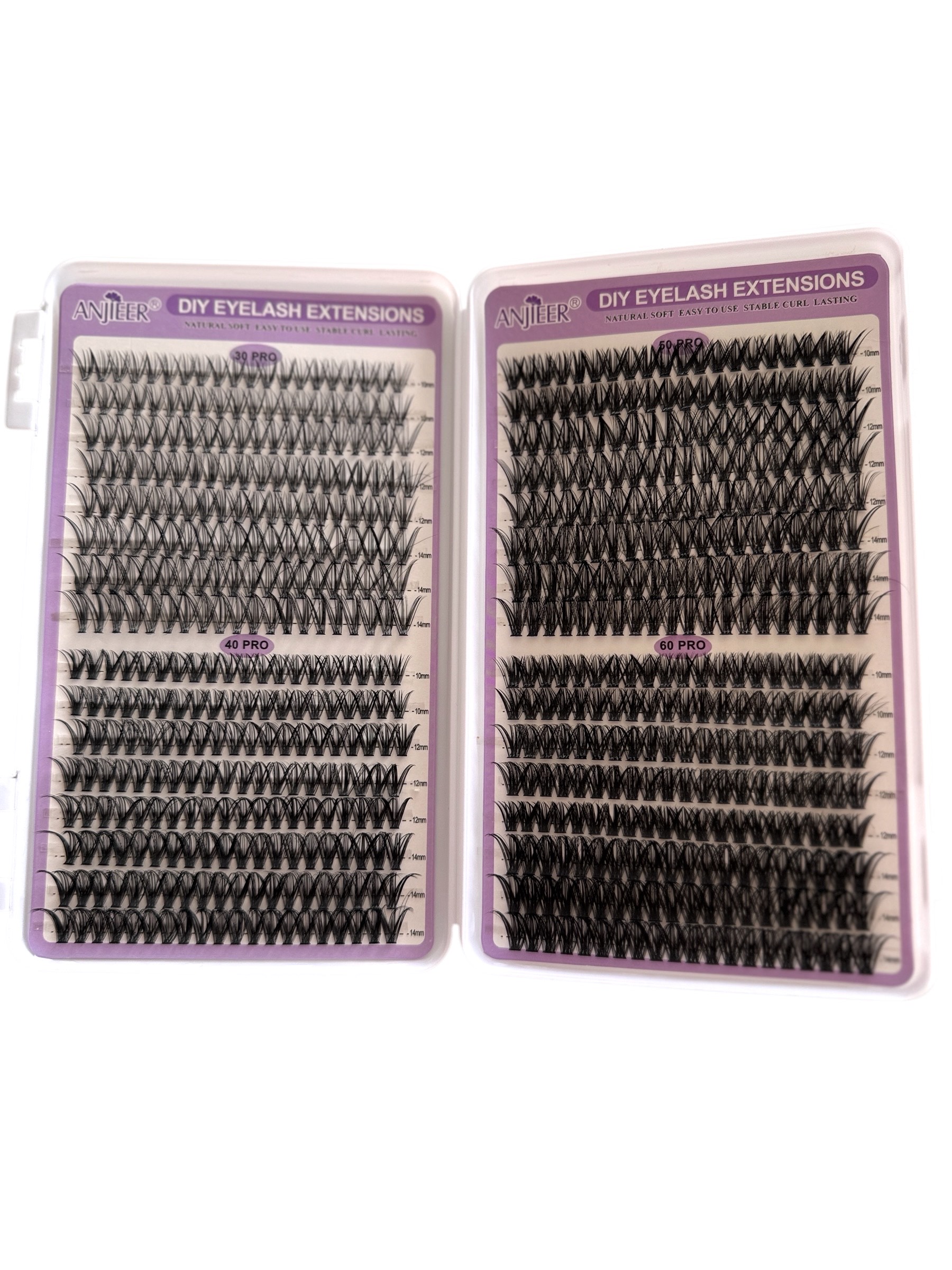 - DIFFERENT STYLES OF COMBO TRAYS: Our lash cluster kit come with four different styles of lashes, whether you want natural or thick, fox eyes or doll eyes, with a mix of lengths ranging from 10 mm to 14 mm to meet any of your needs.